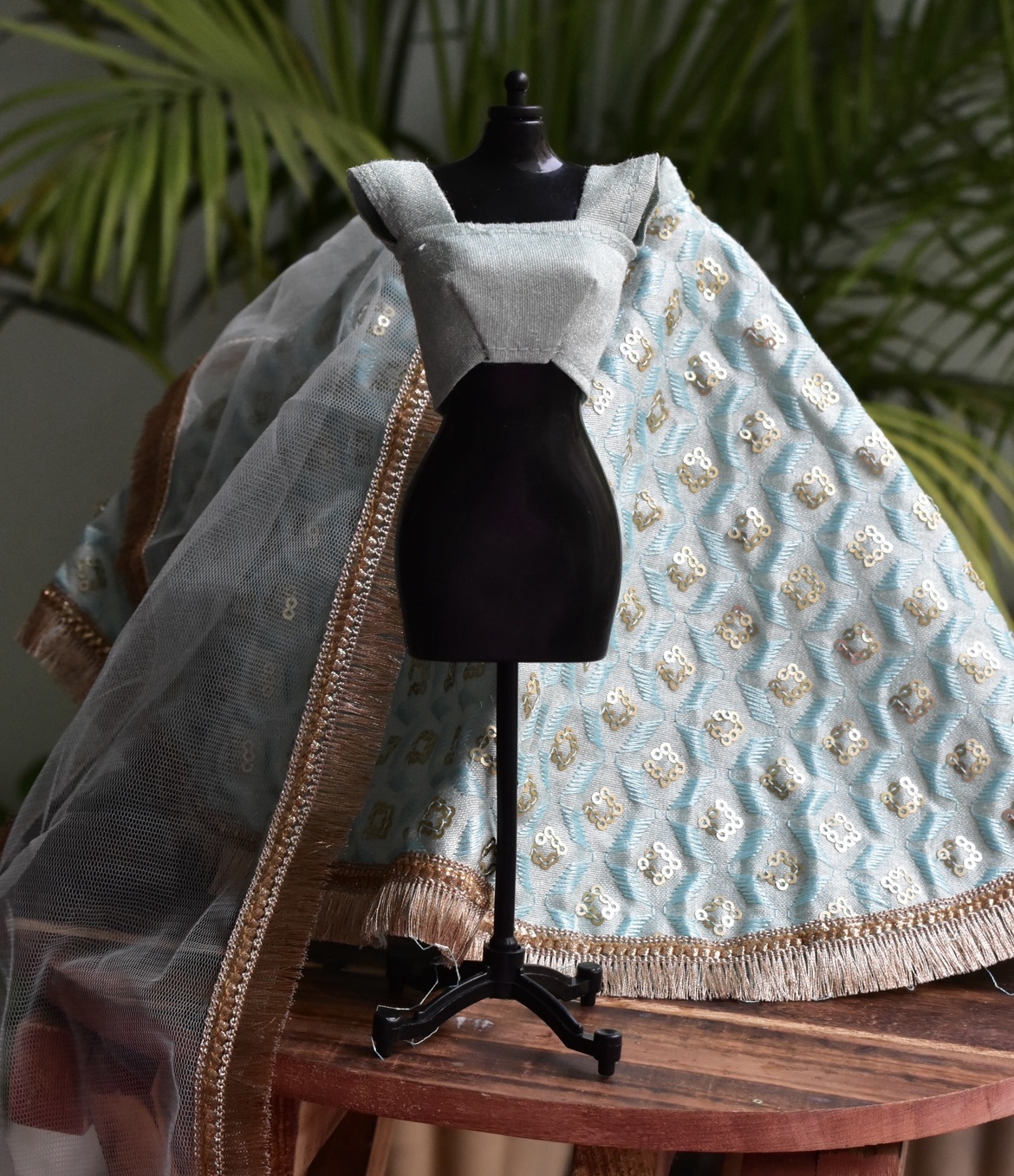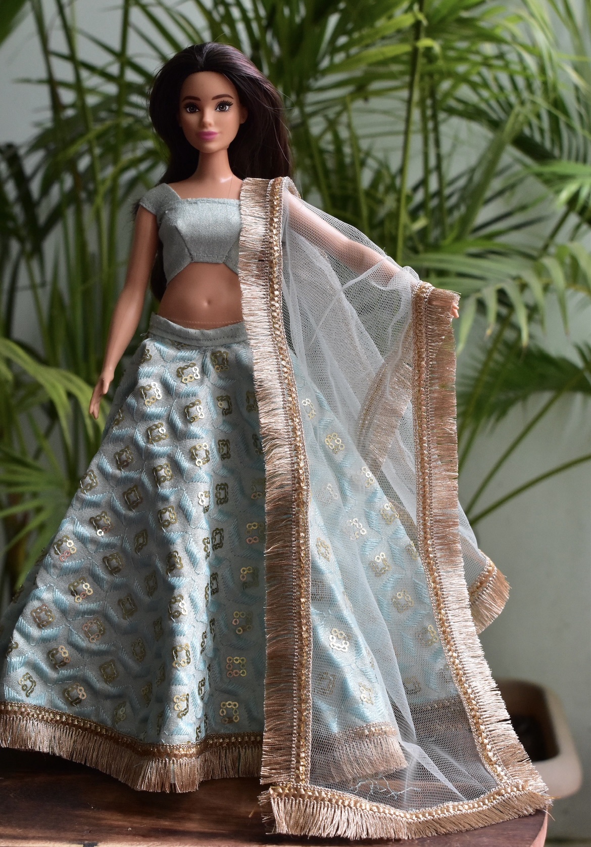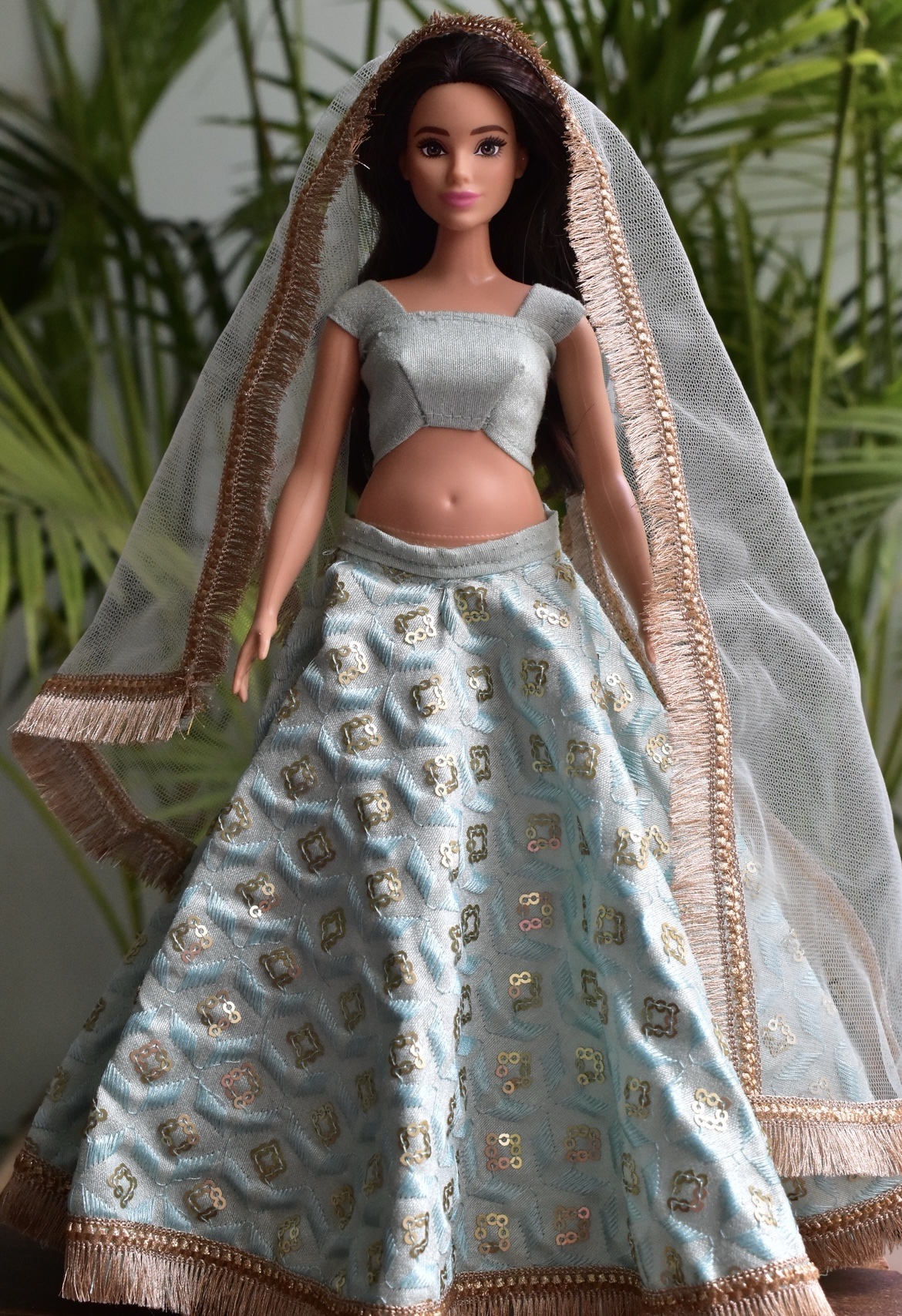 Blue lehenga for a curvy body type Barbie doll.