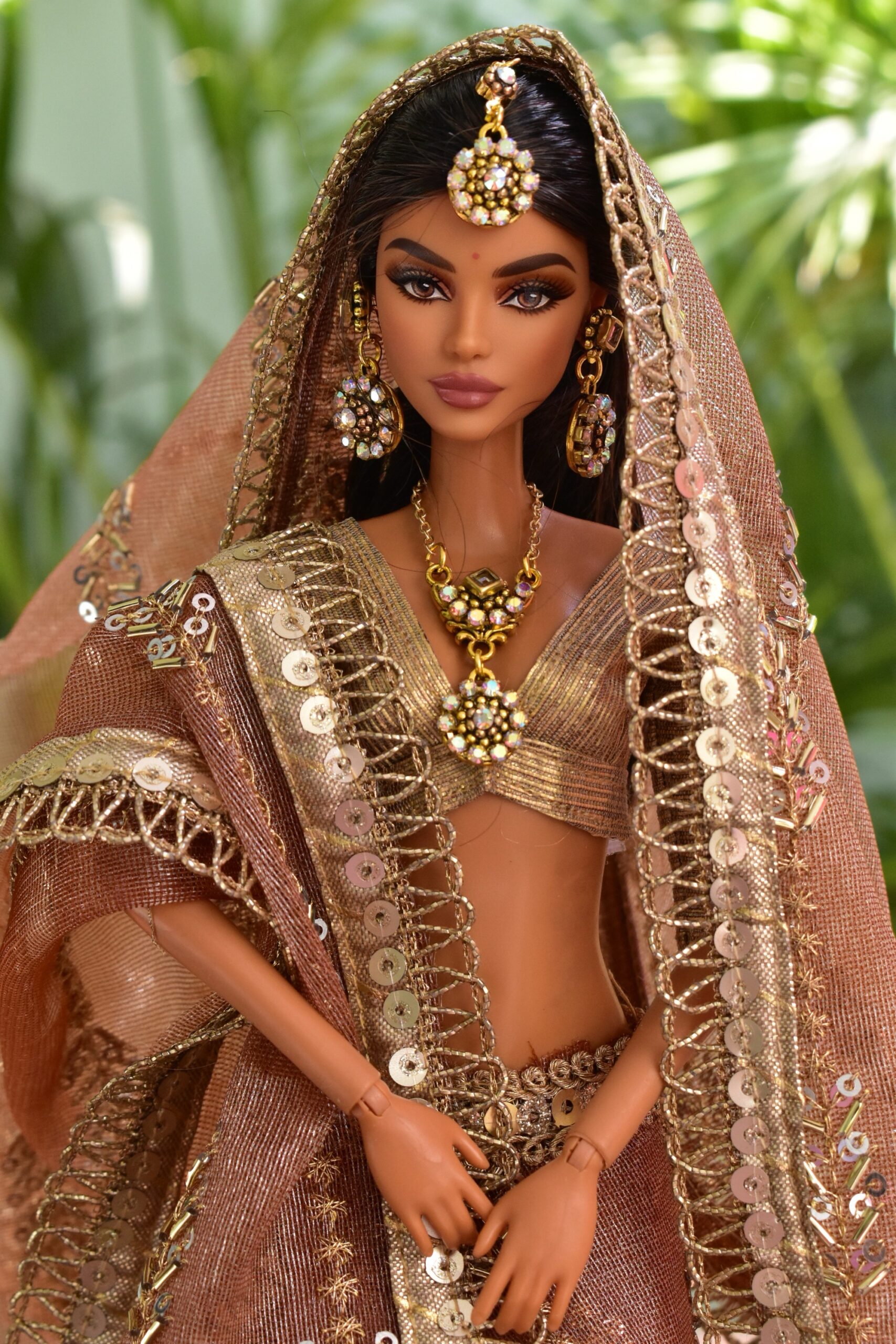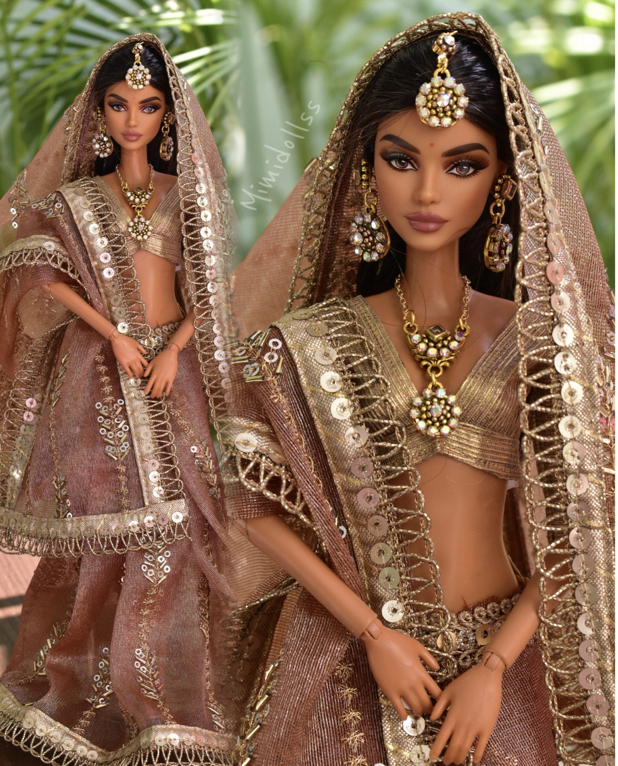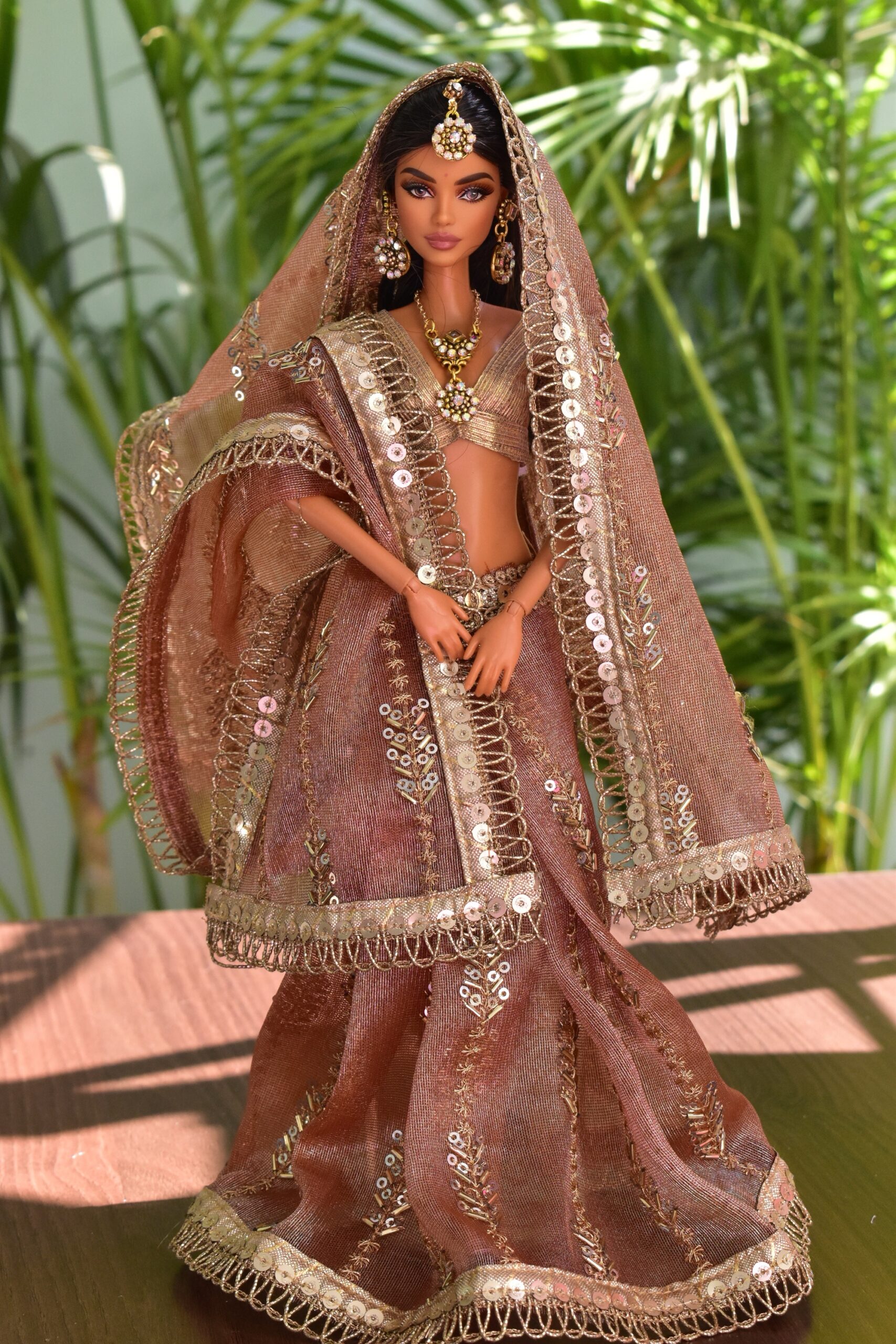 Embroidered Indian bridal saree for doll (peach)