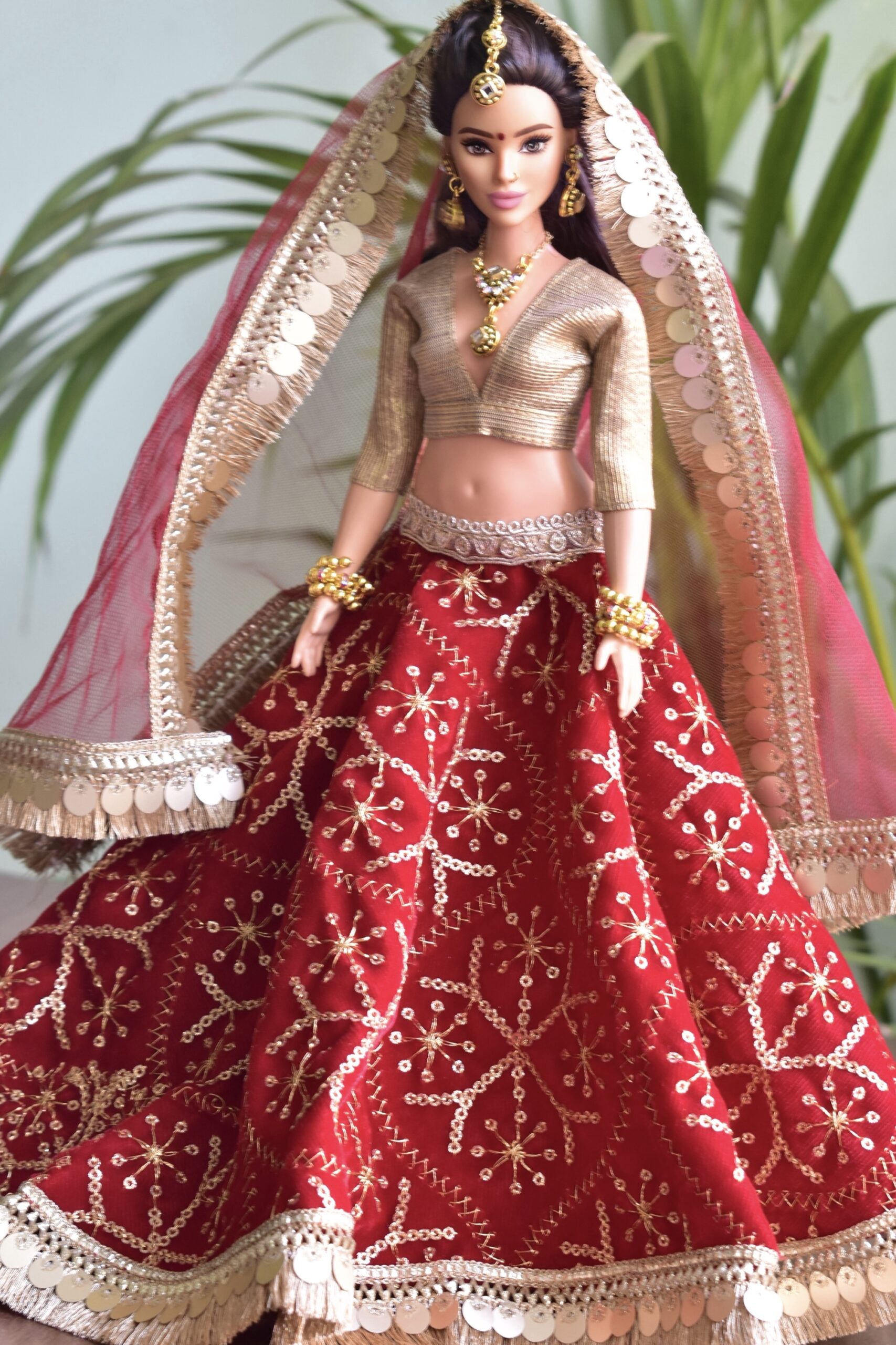 In scale for a curvy body type Barbie and other similar sized dolls.