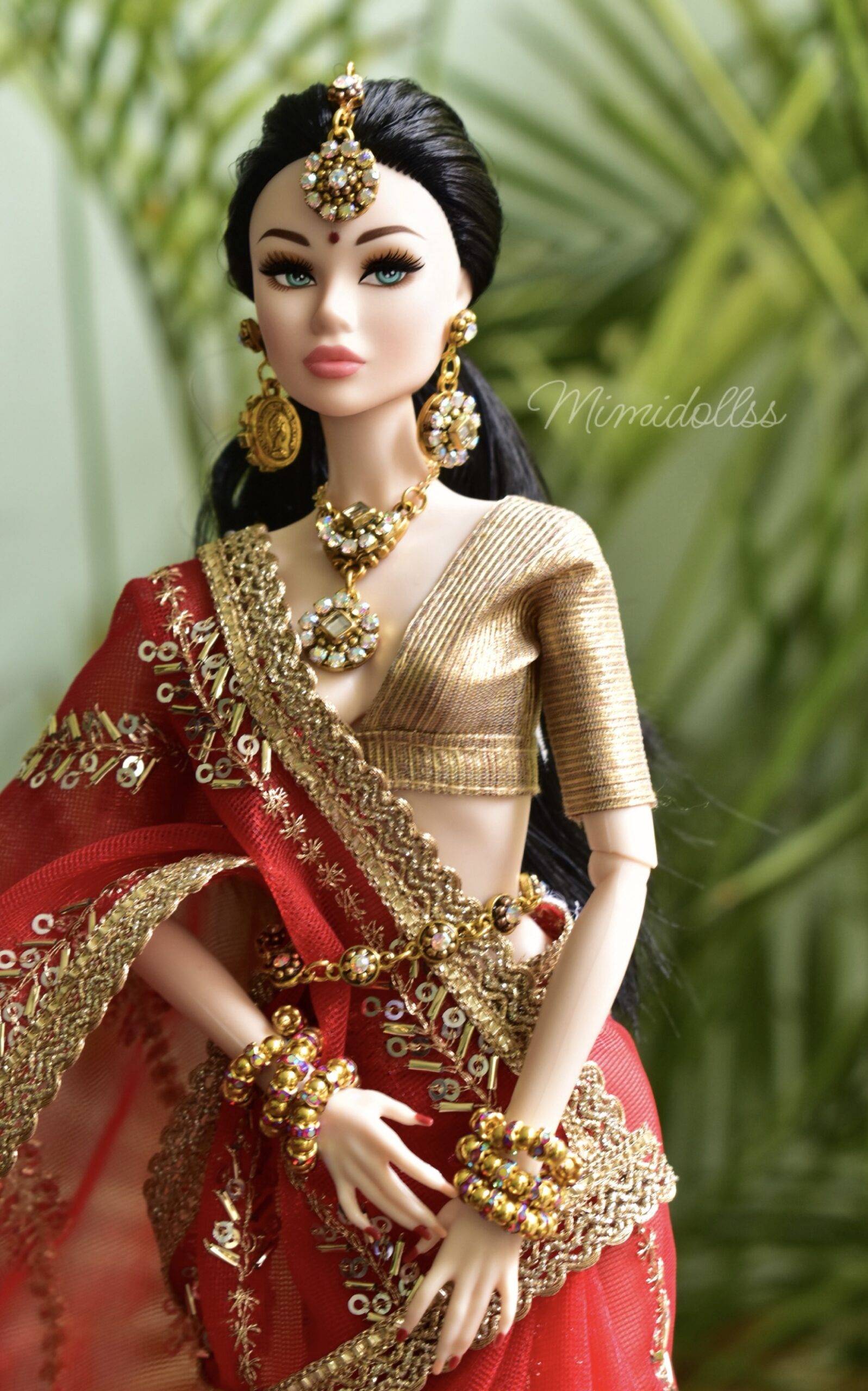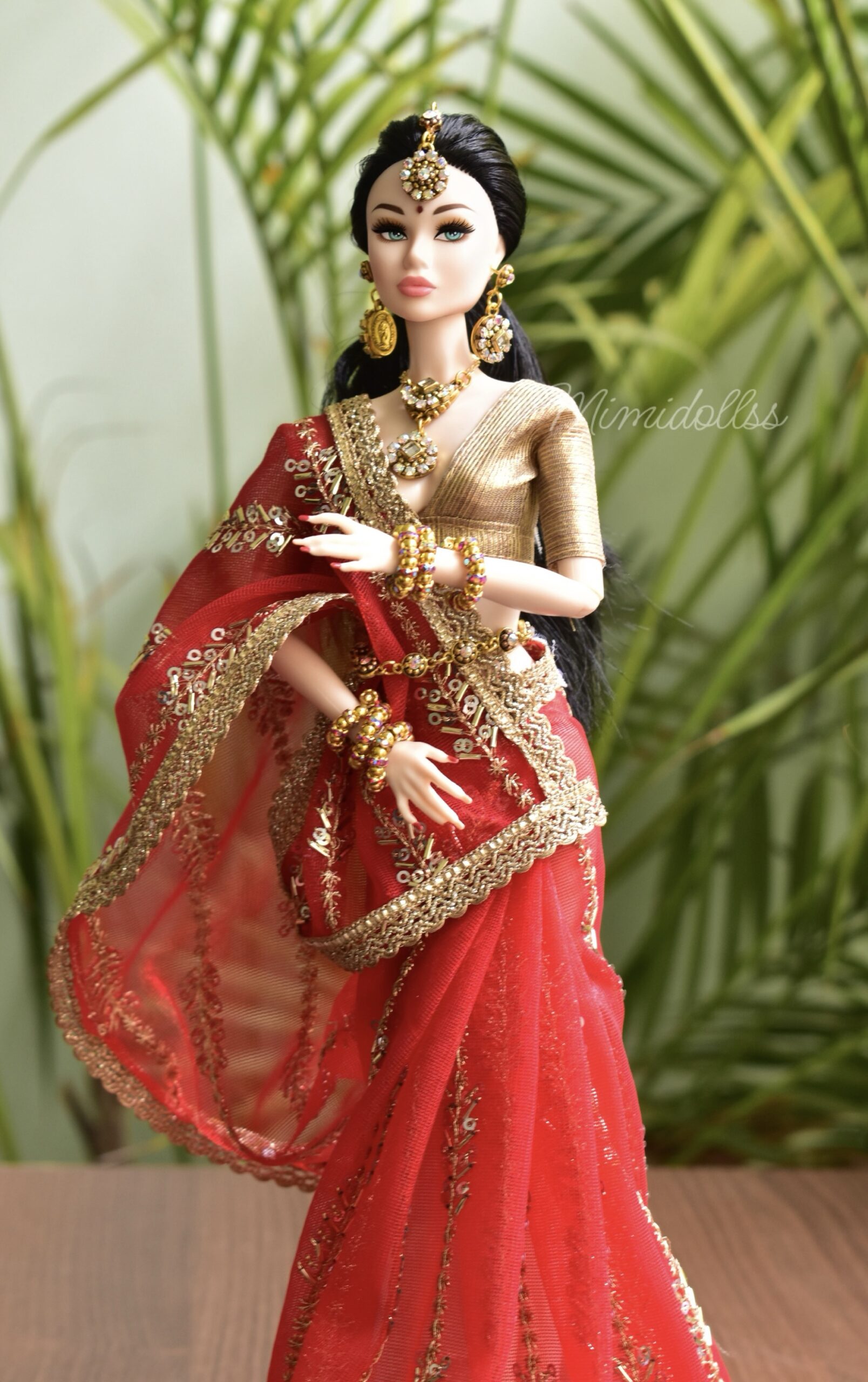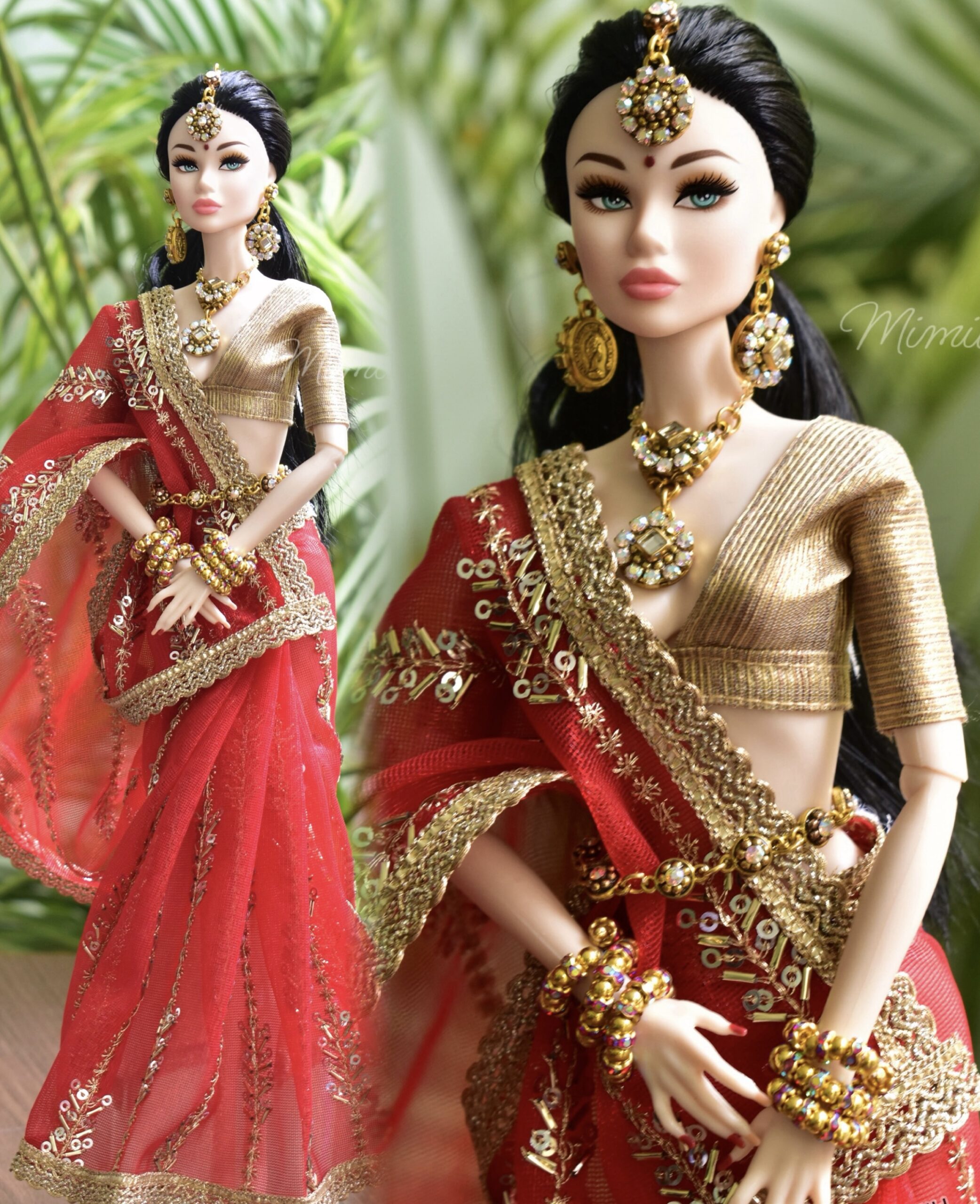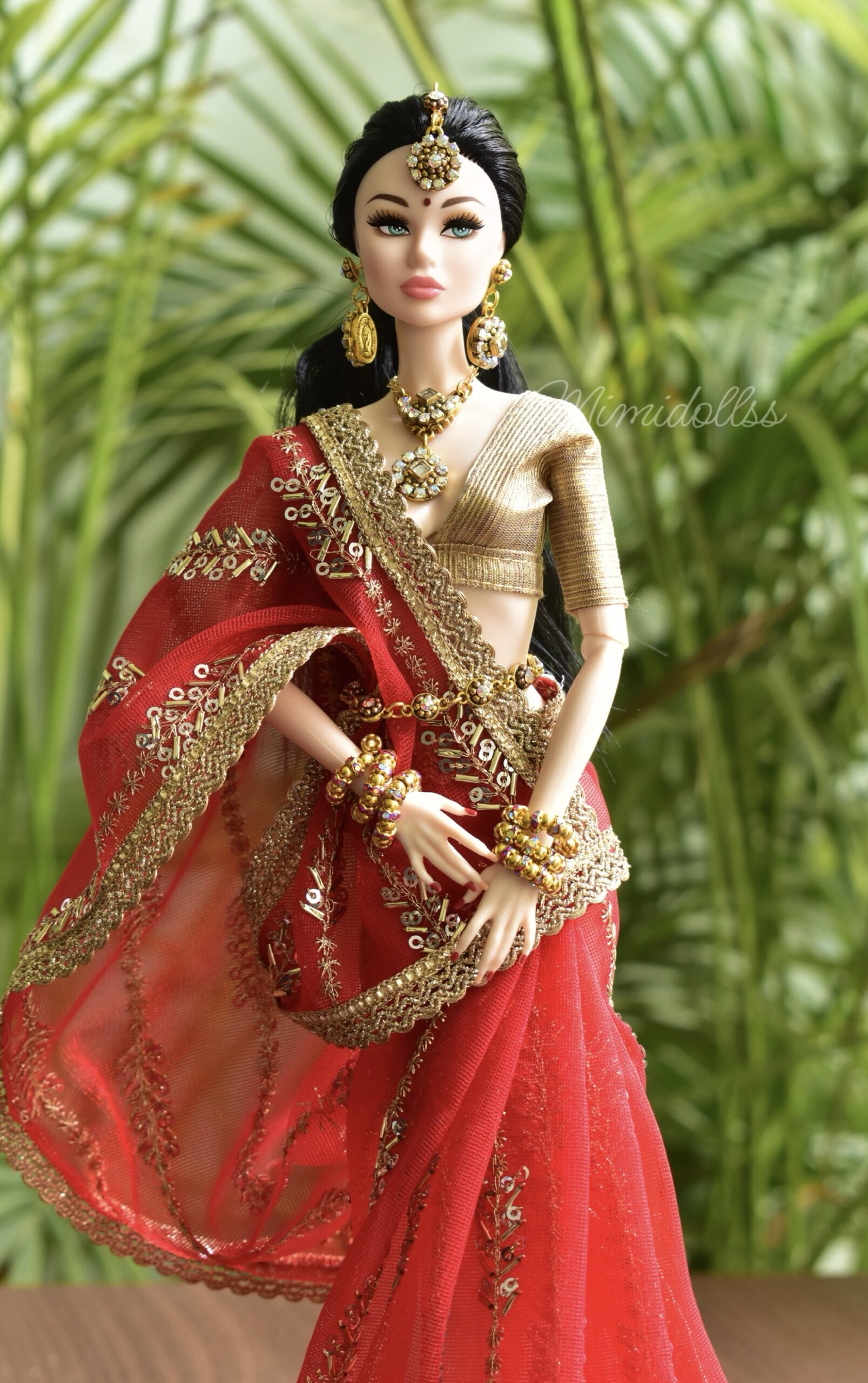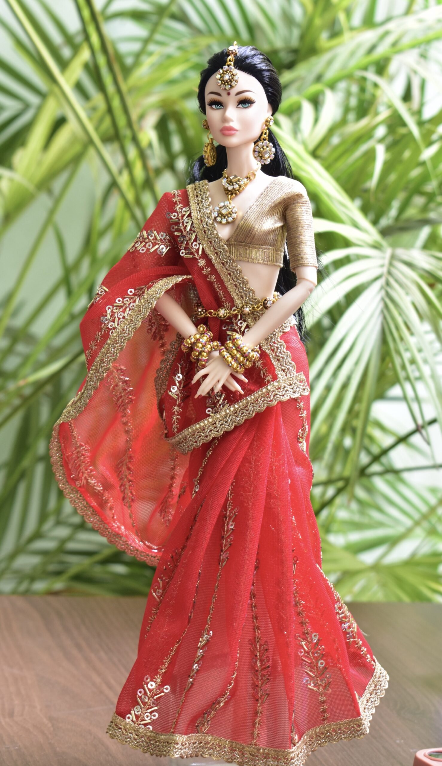 A brand new 33cm tall supermodel body-type doll, elegantly dressed in beautifully handcrafted traditional Indian clothing and intricate accessories. Each doll comes securely packaged in a sturdy, protective box.
