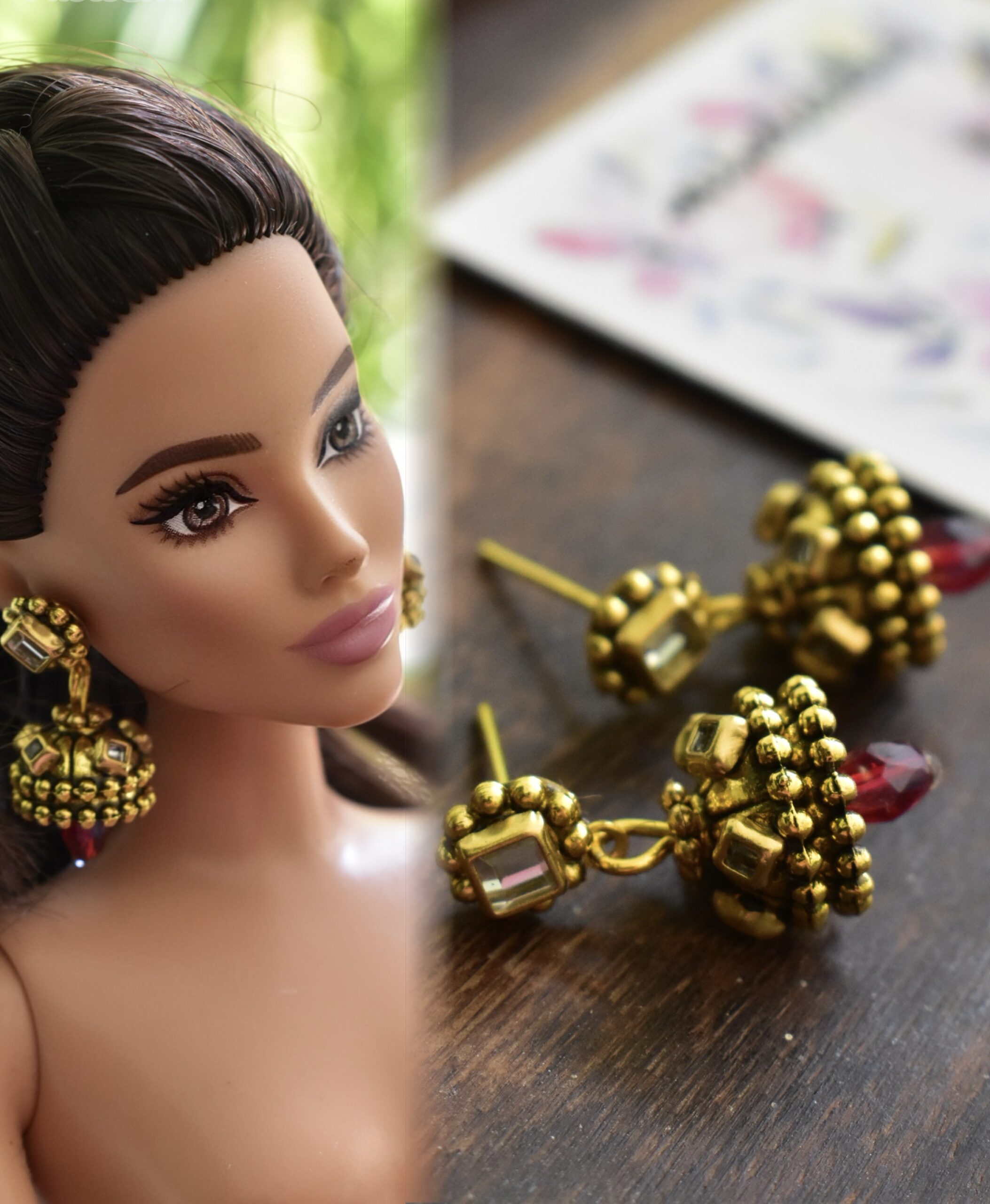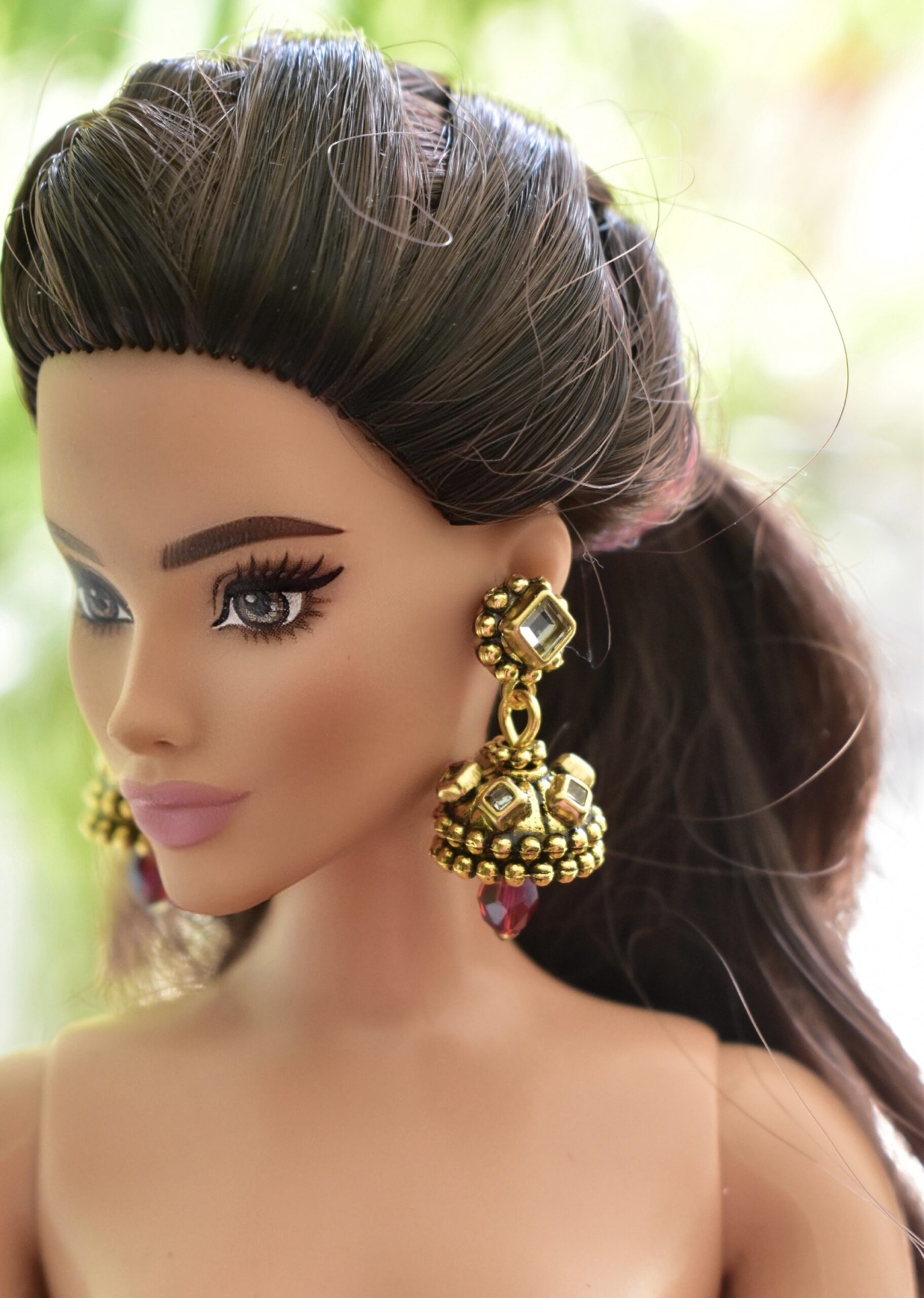 Indian jhumki earrings(red) | doll jewellery (Set of 2)