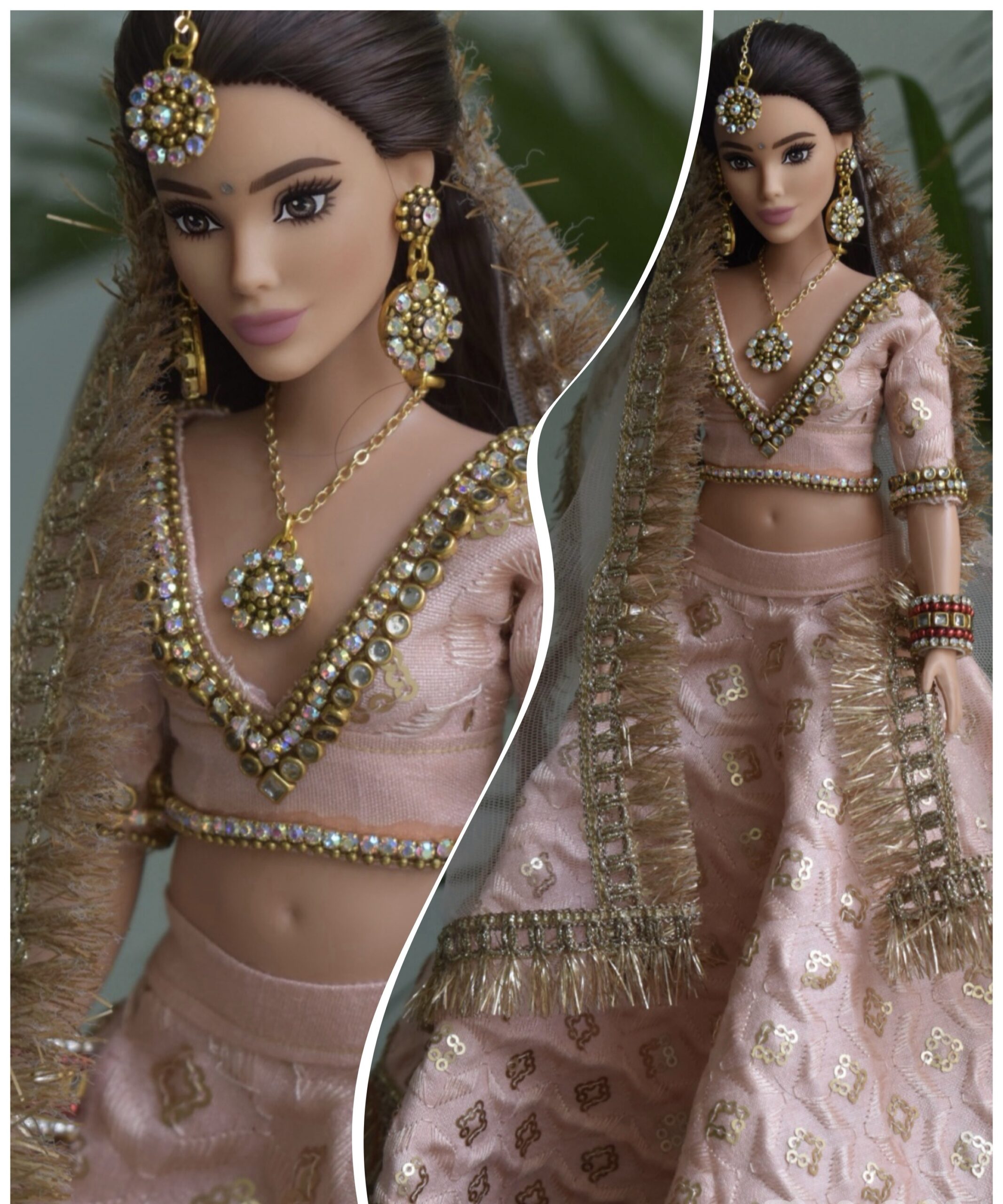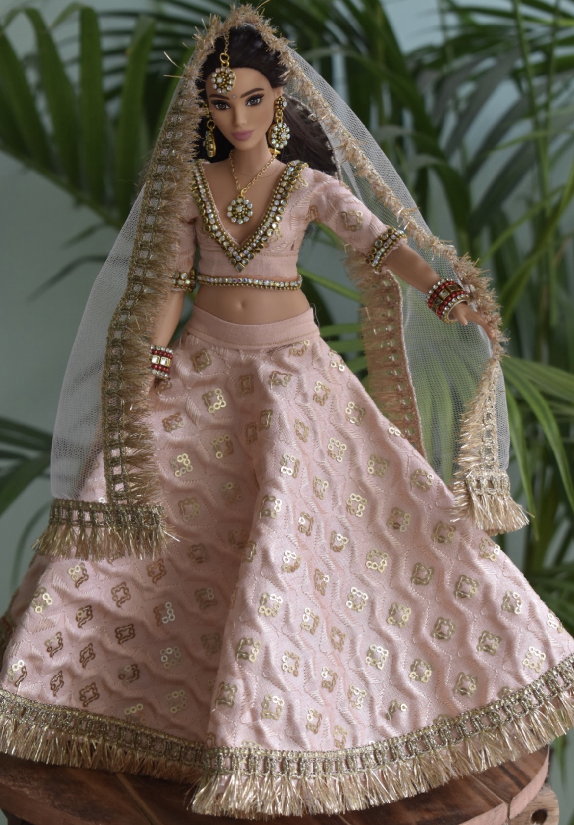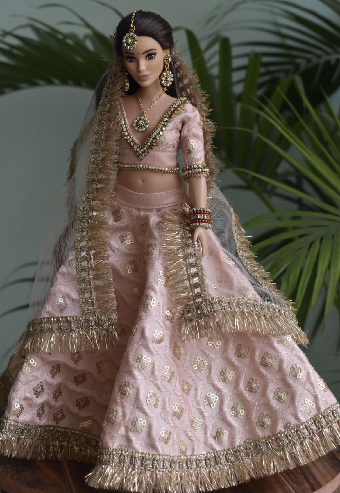 Indian wedding bridal lehenga for a curvy body type Barbie doll.
