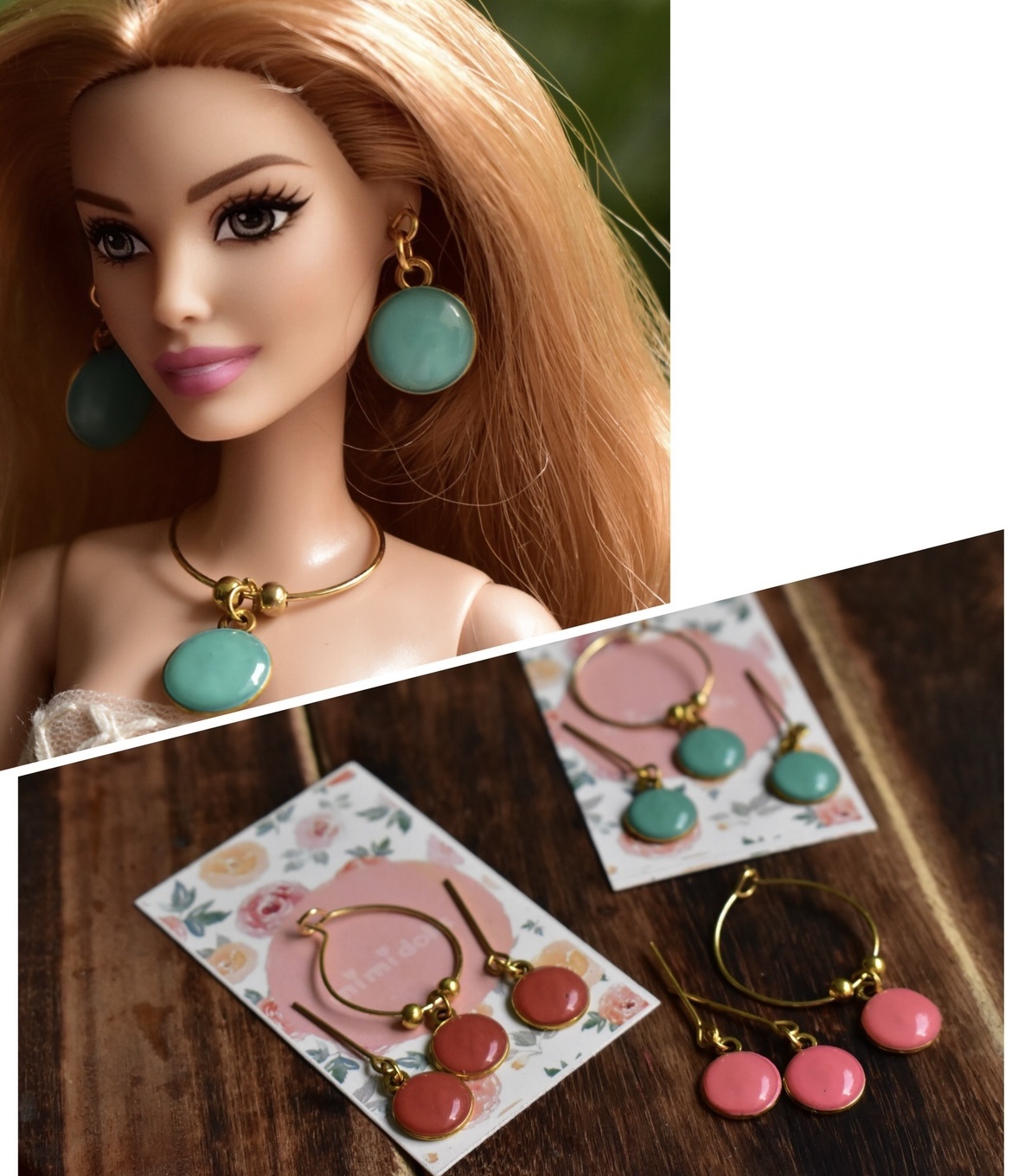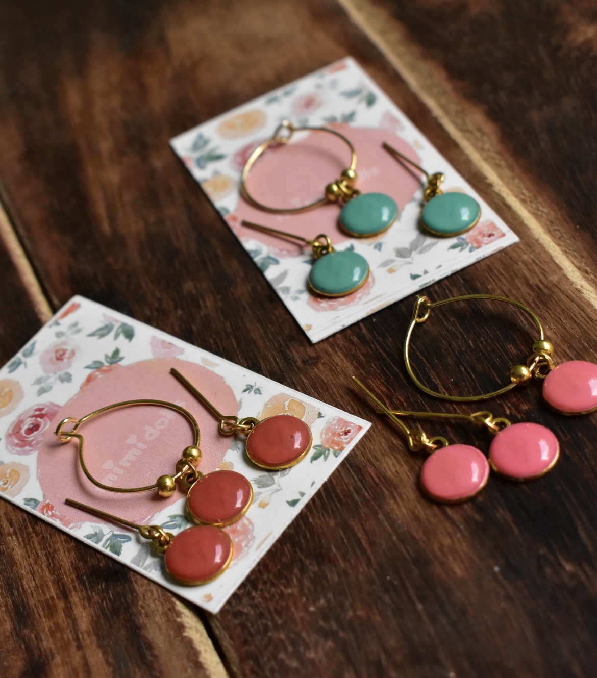 - Set of three earring necklace sets (pink, teal & orange)
