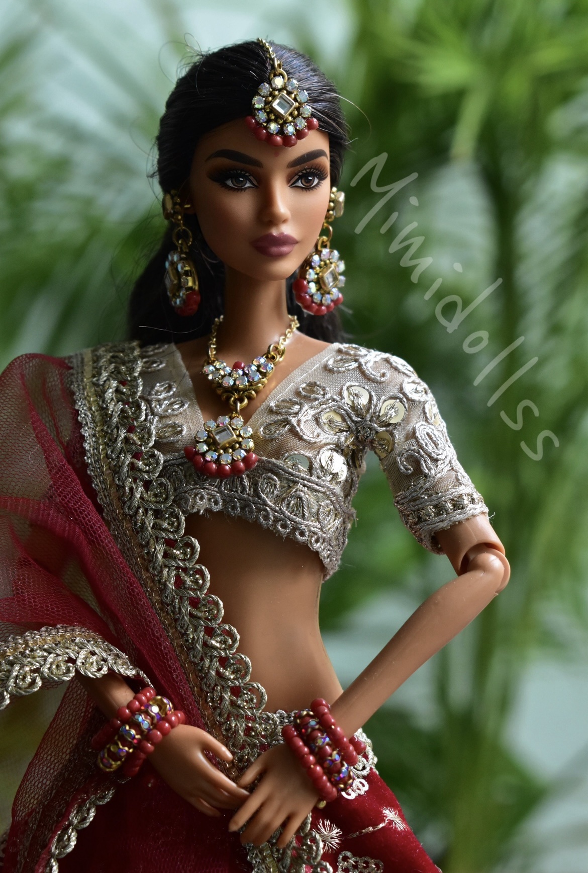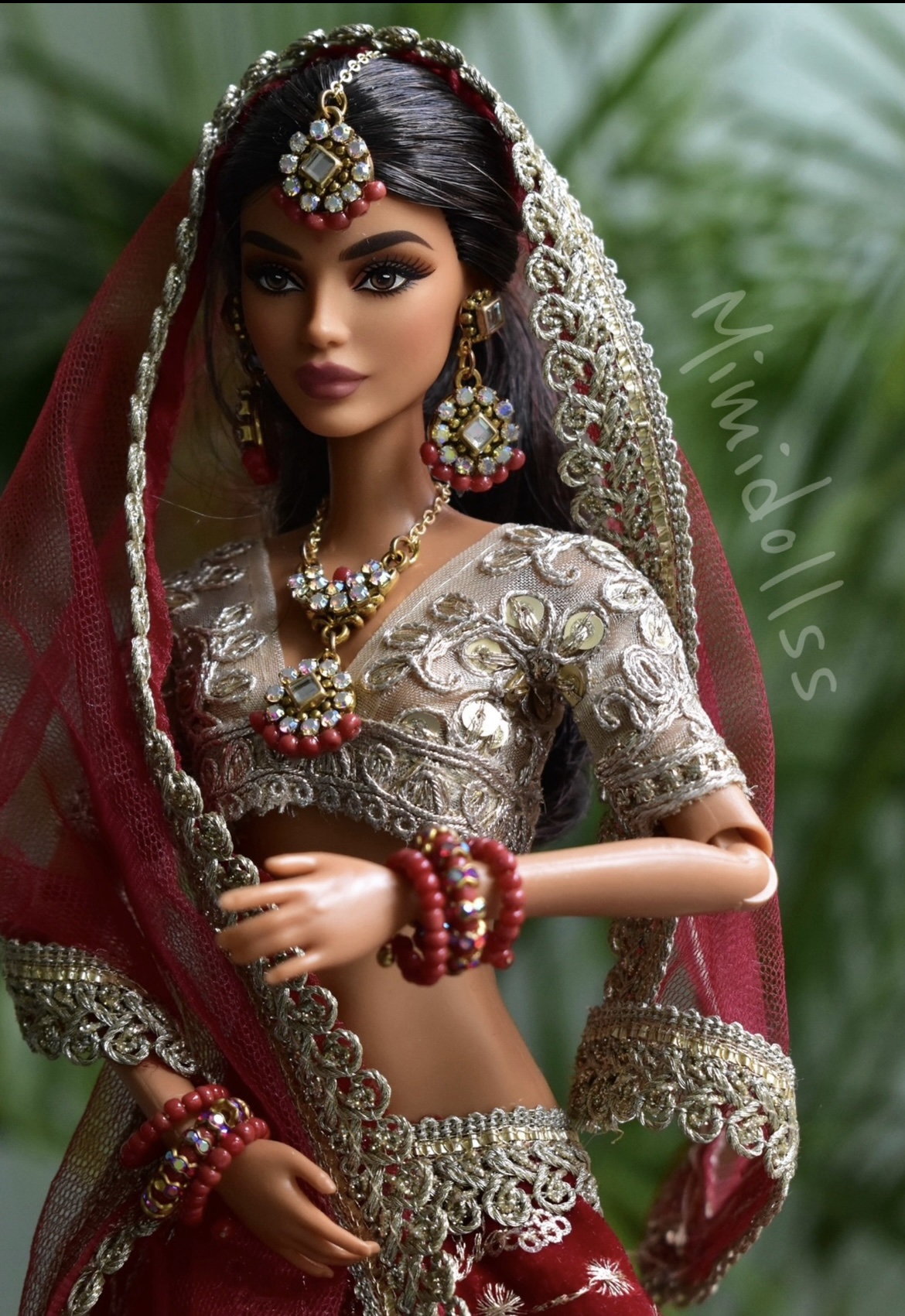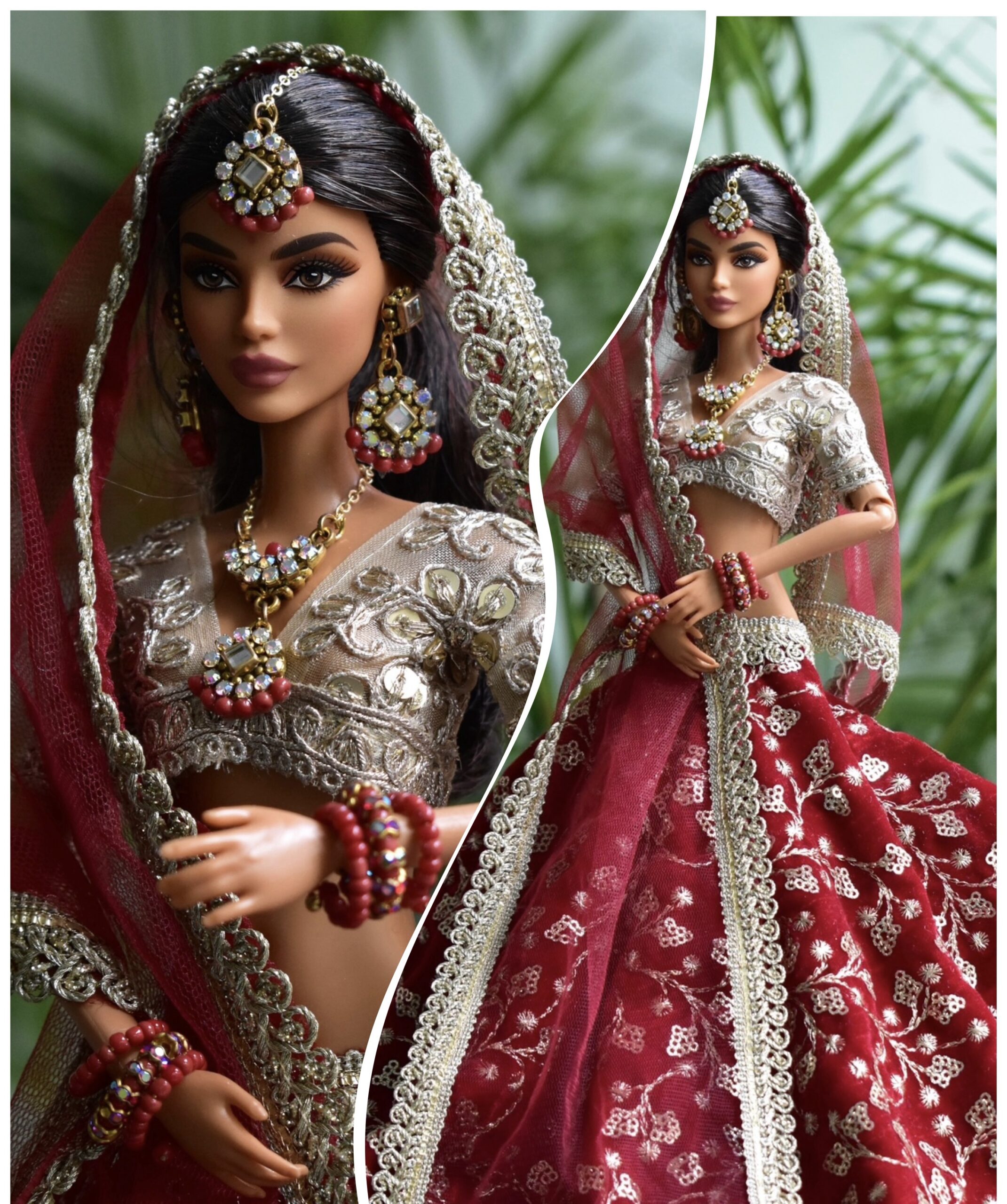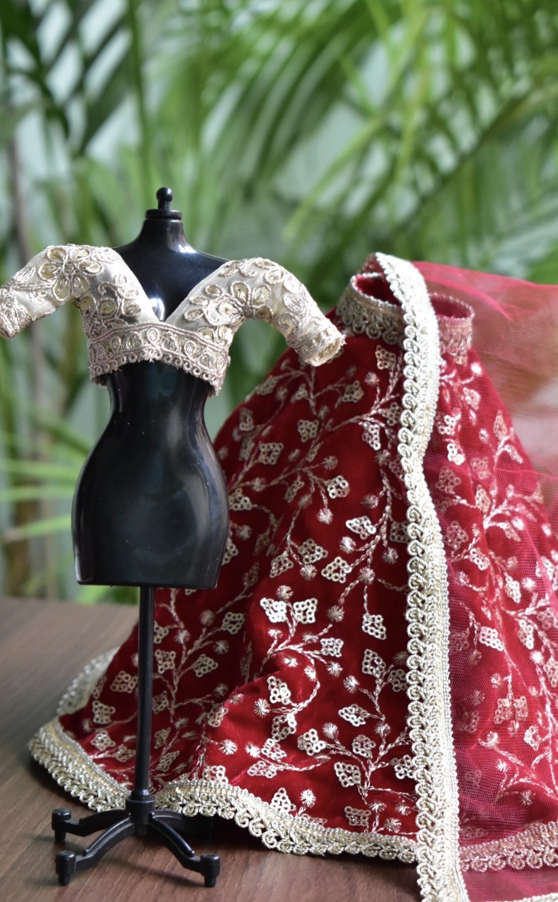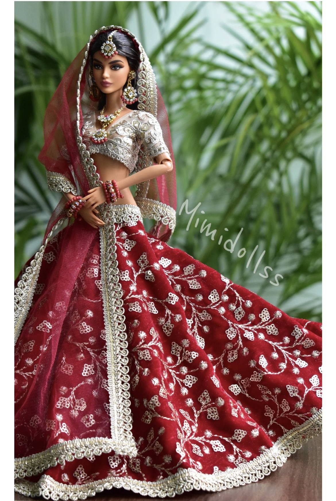 Maroon indian bridal lehenga for doll