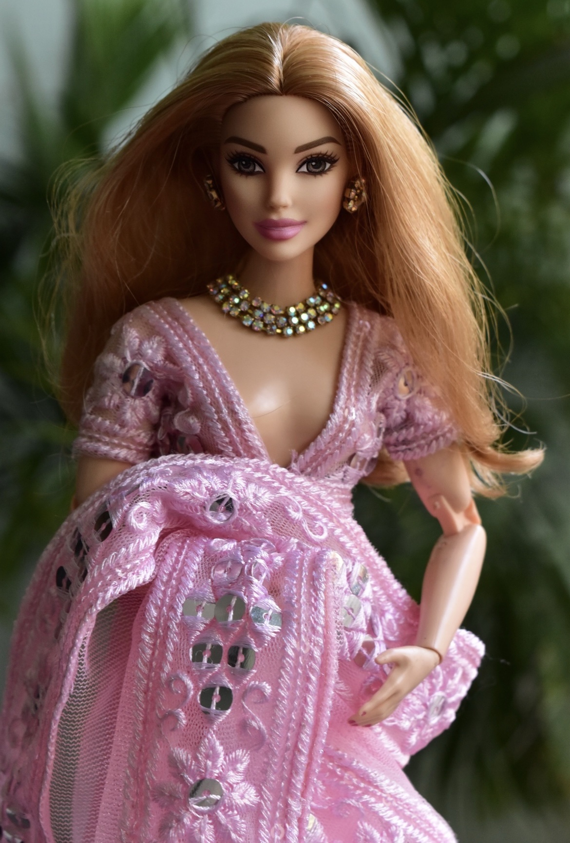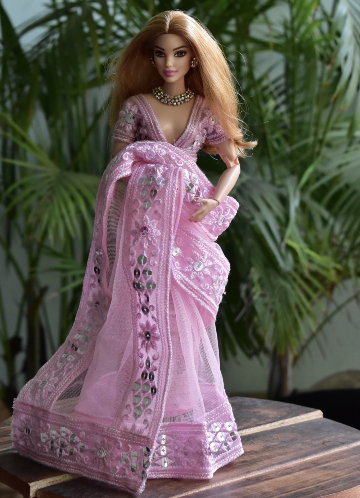 Pink Indian saree for a curvy body type doll.