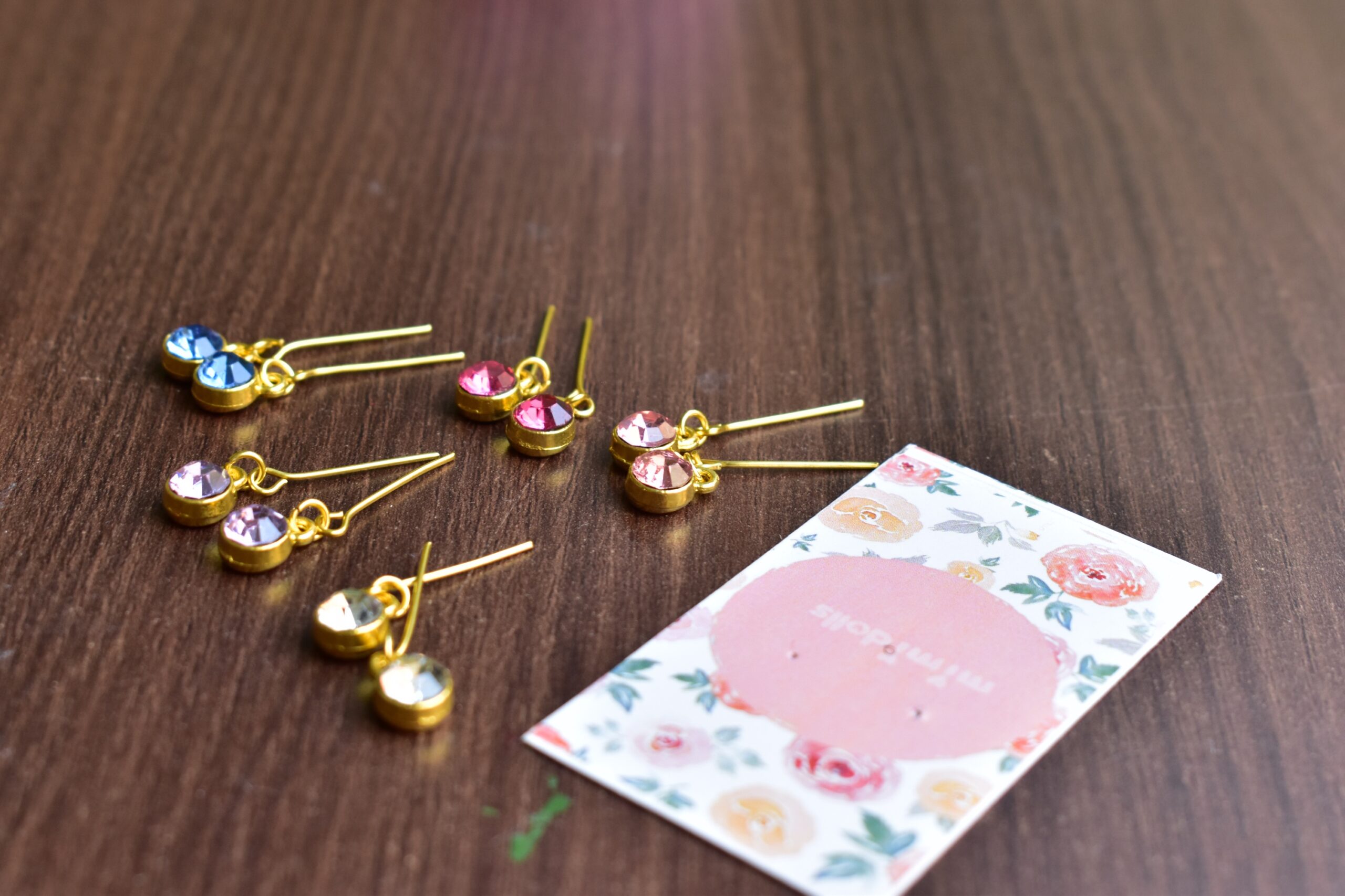 • Set of 5 earrings (pink, white, blue, purple & baby pink)