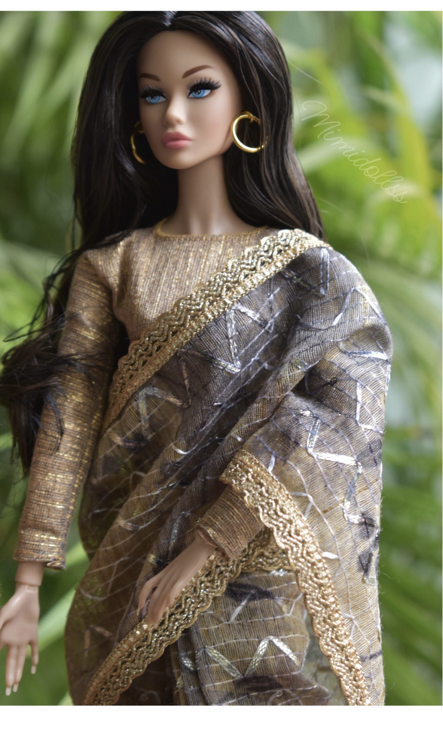 A brand new 33cm tall supermodel body-type doll, elegantly dressed in beautifully handcrafted traditional Indian clothing and intricate accessories. Each doll comes securely packaged in a sturdy, protective box.