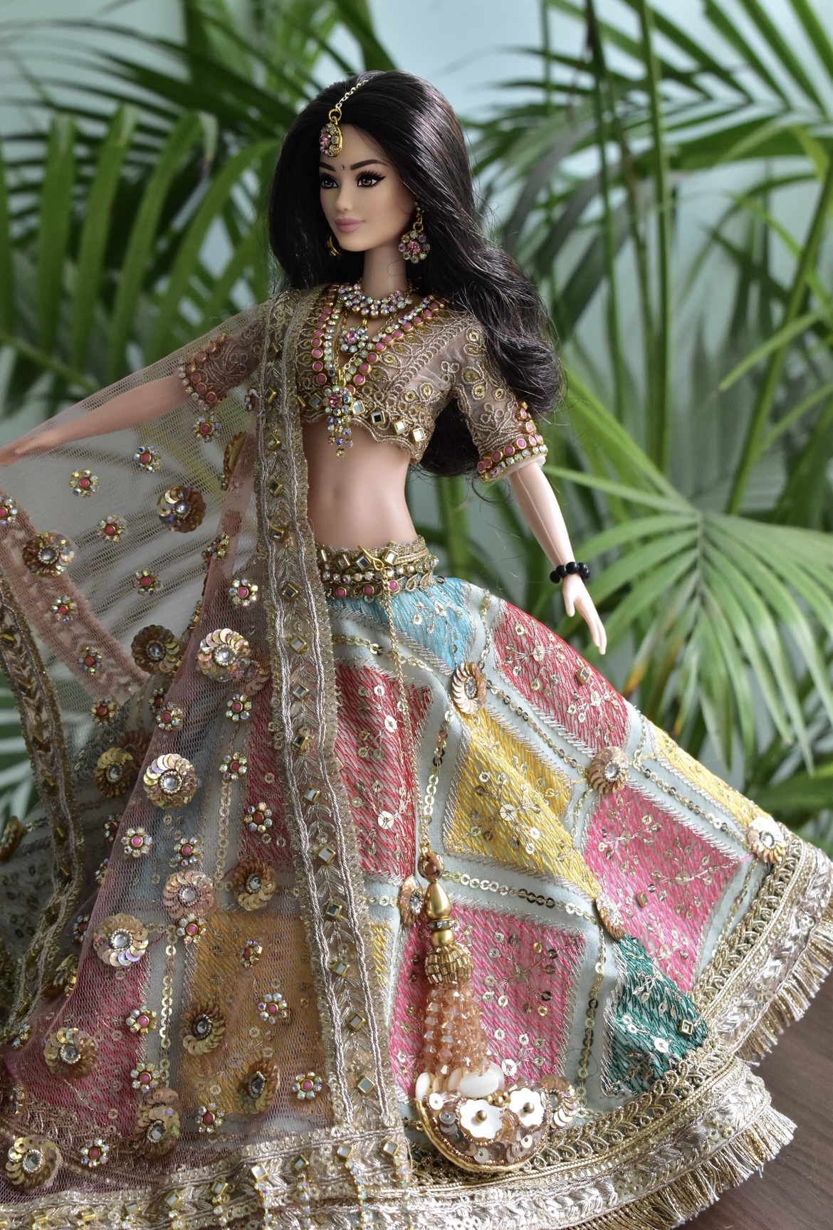 Sparkly Indian wedding bridal outfit for doll